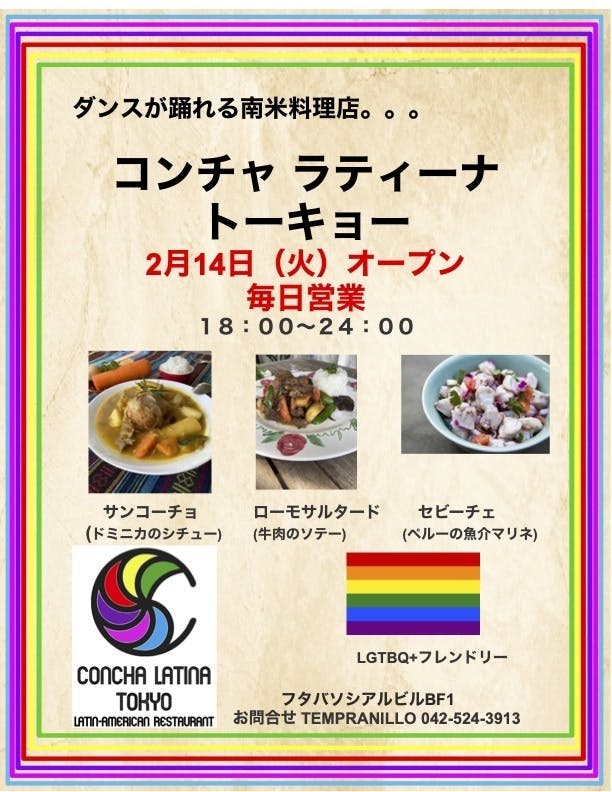 At Concha Latina Tokyo, our doors are open to EVERYONE, regardless of age, nationality, ethnicity, gender, race, religion ... It's a place where everyone is welcome! Especially, we hope that Latin-American cuisine lovers will enjoy our food, drinks, and cultural events, and if you've never had Latin cuisine, give us a try, you will probably leave a Latin cuisine lover!