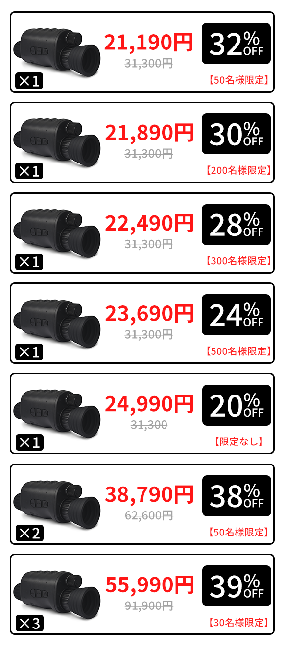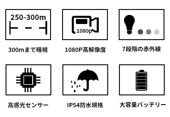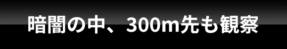 暗闇の中、最大約250〜300m先まで観察できます。市販されている暗視スコープ100〜200m程度の暗視距離に比べ、「NV3188」は最新のセンサーと赤外線レンズを搭載することで暗視距離が飛躍的に伸びました。