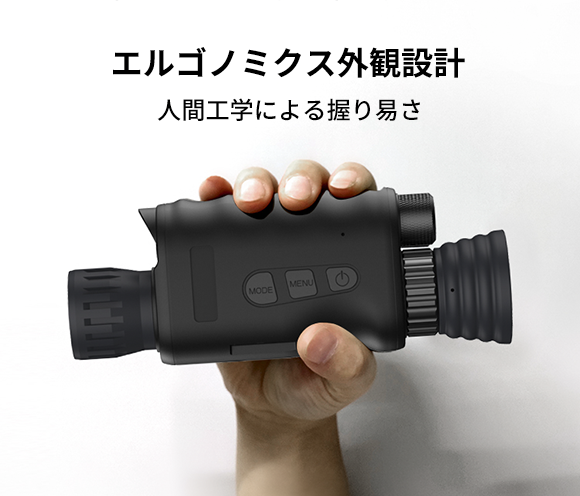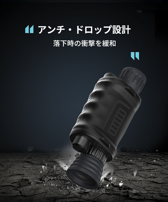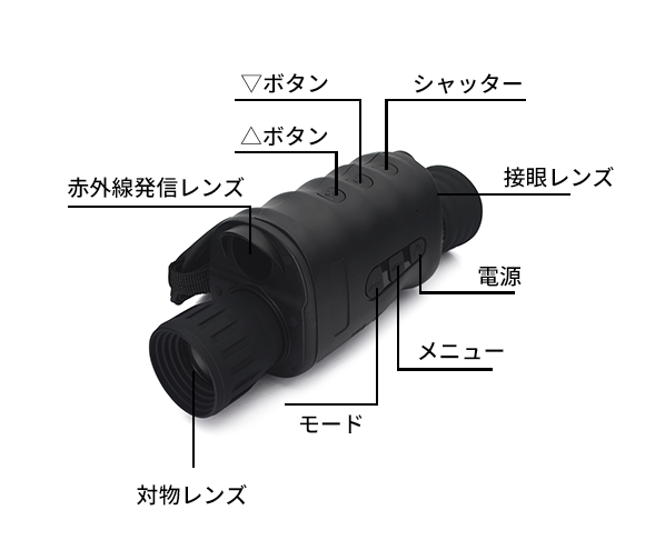 工学10倍の対物レンズを回転させることで映像の鮮明さを調節出来ます。望遠鏡のように遠くの景色もハッキリと見えます。赤外線機能が備わっているため、暗闇の中でも遠くの物を観測することが可能です。
