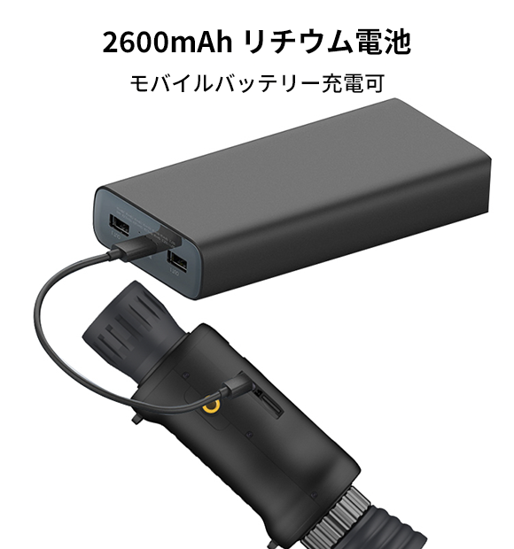 「NV3188」本体と付いている大容量バッテリーリチウム電池は、最大8時間待機できます。しかもモバイルバッテリーで充電可能、長時間野外で撮影しても電力不足の恐れはもうありません。