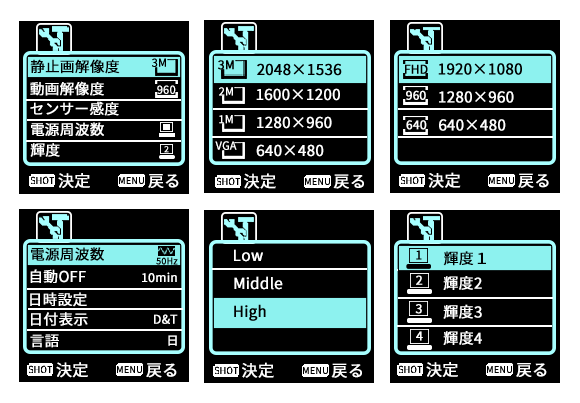 動画解像度は最大1080Pで、静止画解像度は最大2048x1536になります。