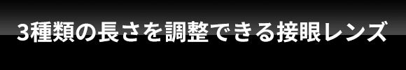 接眼レンズは3種類の長さがあります。近眼・遠眼の人でも調節可能です。アイカップは皮膚に優しいゴムで出来ています。