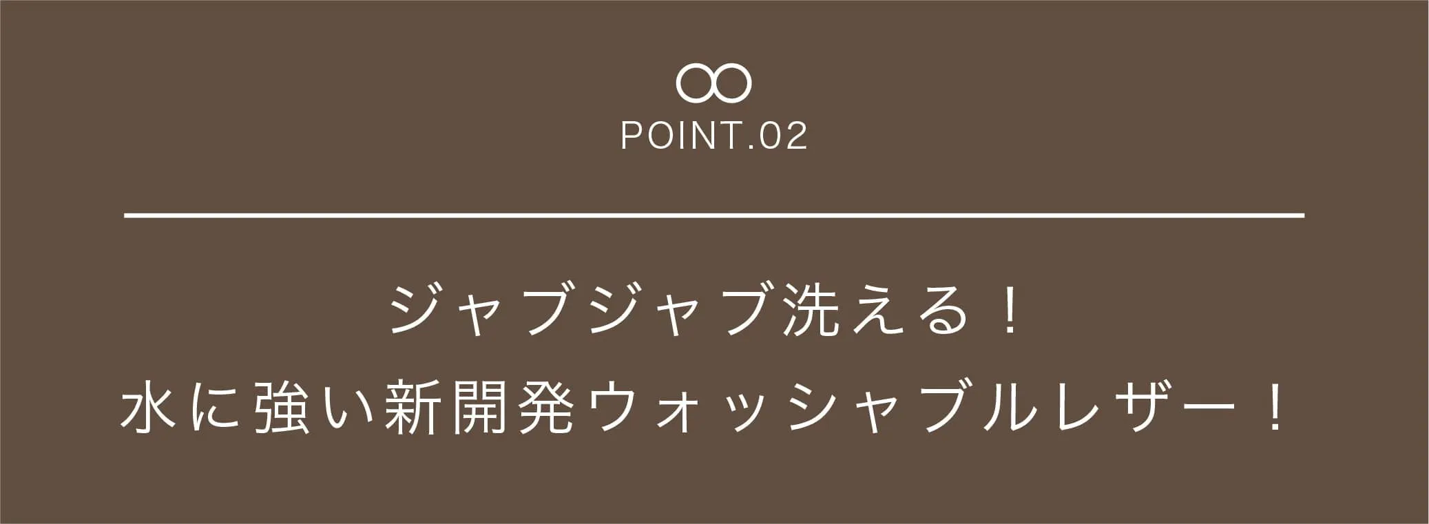素材からこだわった特別なウォッシャブルレザーを開発することで汚れても洗える!