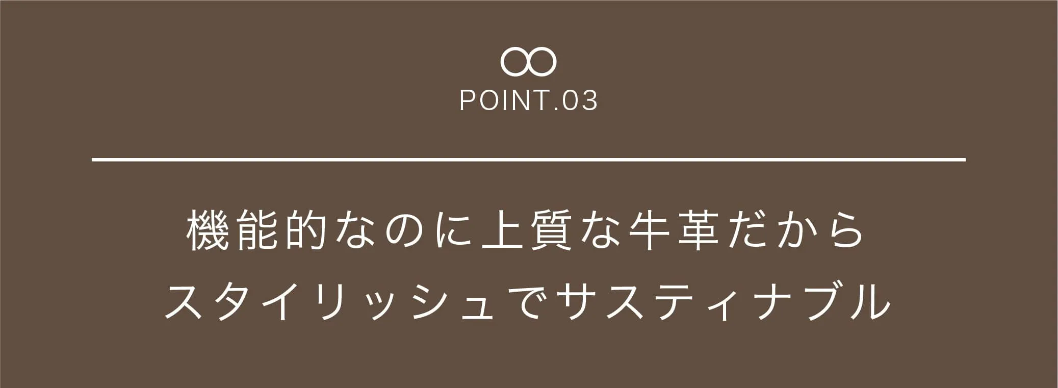 また、牛革ですから「畜産副産物」です。つまり環境に優しいリサイクル品。最近世界で注目されている「サスティナブルユース」の観点からも、本革は大変素晴らしい素材なのです。