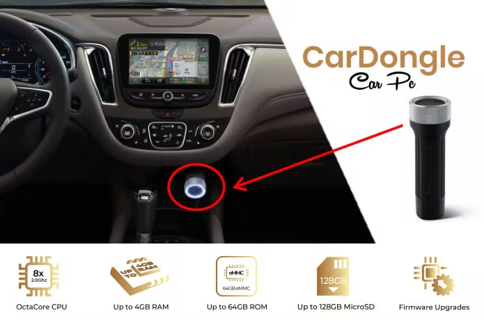 【CarDongle】の本体に2.0GhzのCPUと最大64GBのメモリを内蔵し小型PC並みの高性能化を実現します。