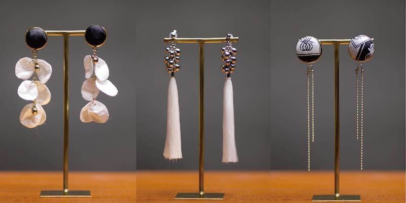 「繭」「糸」「織り」と、お蚕さんの命が形を変えたイヤーアクセサリーも制作しました。イヤーアクセサリー繭-mayu-は繭の羽がふわふわとエアリーに演出してくれます。イヤーアクセサリー糸-ito-は、市販では目にすることがないほどのとても細い糸でタッセルを制作。その糸を使用して製織した生地のくるみボタンのイヤーアクセサリー織り-ori-は、シルバーのボールチェーンが外せる2wayタイプです。