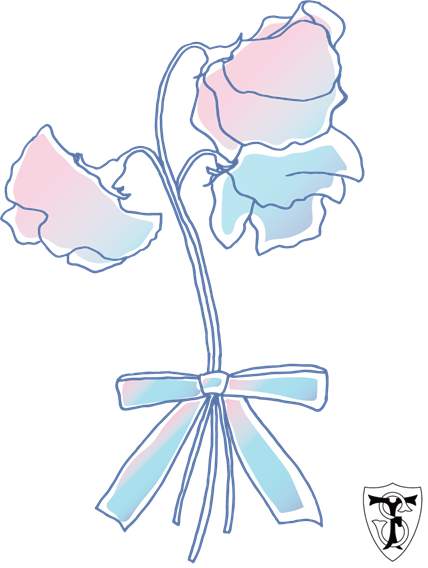 今年度の大学祭テーマ『Re:Start』にちなんだデザインです。スイートピーの花言葉は“新たな一歩”。Ferris Festivalの再始動に向けた学生の篤い想いを、可憐なスイートピーに託しました。グラデーションカラーは、対面開催の実現までの三年間で醸成された想いが、新たなステージで開花する様子を表しています。皆さまにもこの想いが届きますように、花束に、願いを込めて。