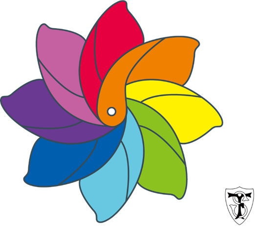 このデザインは、アンネのバラと赤い風車をイメージしています。多彩に色を変えるアンネのバラから着想を得た虹色の風車に、環境問題に力を入れている本学らしく美しい自然を未来へ残そうという想いを込めました。また、Tシャツのデザインということで思わず着たくなるような可愛らしい印象に仕上げました。