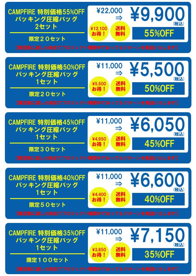 2023/12/05 16:49これまでCAMPFIREで開催したプロジェクトに、ご関心をお寄せいただきましてありがとうございます。現在はバラエティーにとんだ、生活に役立つアイテムでプロジェクトを開催しております。自宅でもオフィスでもキャンプでも!!使いたいときにすぐに使えるアンブレラ式ベッドhttps://camp-fire.jp/projects/view/722078現在はほかに複数のプロジェクトが進行しております。冬の寒さの温暖革命!!最新テクノロジーのペルチェ式でぽかぽか快適ネックウォーマーhttps://camp-fire.jp/projects/view/689613寒い冬でも究極の温かさを革命的新素材エアロゲルで実現!!快適な睡眠のための掛布団https://camp-fire.jp/projects/view/647135外国人との言葉の不安を瞬時に解消!!134か国語の翻訳や画像翻訳もできる翻訳機 LanFreehttps://greenfunding.jp/lab/projects/7673びっくり!!水がのぼって見える??摩訶不思議でとてもおしゃれなインテリア加湿器https://camp-fire.jp/projects/view/712762お風呂後も優しく乾せて、快適でストレスもない360度全方位の幸せドライヤーハウスhttps://camp-fire.jp/projects/view/703909電動エアーポンプ・高圧洗浄機・ジャンプスターターにもなる5way超多機能マシーンhttps://camp-fire.jp/projects/view/684383 旅行の荷物を半分にしたり、2倍の収納をしたりすることができる圧縮パッキングバッグhttps://camp-fire.jp/projects/view/710825もしこれらのプロジェクトにつきましてもご関心をおもちいただけるようでしたら、ご支援を賜れれば幸いです。またもしできましたら、X(Twitter)・Facebook・Instagram・Youtube・Line等々SNSでこれらのプロジェクトをシェアいただけるようでしたら幸いです。是非とも皆様のお力をおかしいただきたく存じます。何卒よろしくお願い申し上げます。 株式会社フェリクス もっと見る限定数リターンの発送について