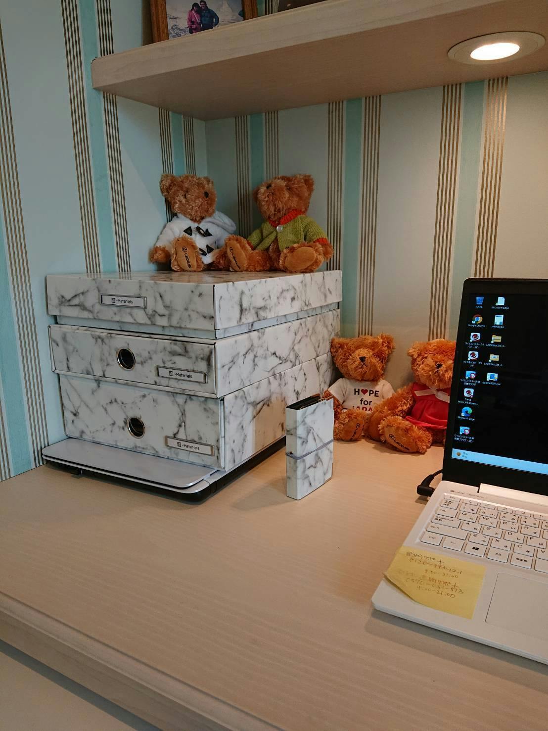 2023/01/26 16:35あと、5日です!ぜひ、この機会にお得なご支援をお願いします。お友達・同僚・お知合い に ご紹介いただけたら幸いです!ご購入いただきました(発売より今まで)皆さんの声をご紹介します。支援のご参考にしてください!千葉県浦安市 Y中 さん (写真掲載)デスクに書類が整理されないままに山積みになって困っていました。この横型ホルダーケースを使うようになって急ぎ処理するもの、暫し保管するものに使い分け収納するようになり噓のようにデスクがスッキリしました。また、デザイン・柄もひと昔前の書類箱と違ってプレッシャーを感じないシックなマーブル柄なので気持ちもリラックスしてデスクワークもはかどっています。アプリ利用が増えたとはいえまだまだカードは減りません。中々いいカードホルダーがない中で出会ったのがこのカードホルダーです。デザインもシックで且つ大容量。もう手放せませんね。大阪府大阪市 Y本 さん質感、汚れにくさ、しっかりしたところが気に入り購入しました。初めてこちらの商品を購入しましが、使い勝手もよく満足しています。千葉県市川市 O落合 さん同じシリーズのゼブラナチュラル柄と同時に購入しました。ゼブラ柄(というよりは木目柄に見える)の、光が当たると立体的に見える質感にも驚いたのですが、マーブル柄は光沢でツルツルとした石の質感が表現されていて、柄によって表面の質感を変えるこだわりに感動しました。見せる収納として大変レベルが高く、ぜひ他のシリーズも揃えたくなりました。神奈川県川崎市 K田 さん組み立てなのにしっかりした形になる仕組みに驚きました。これからも低コストな商品開発頑張って下さい。東京都港区 S貫 さんマンションフローリングと似ているので、とても気に入って、何種類も買っています もっと見る