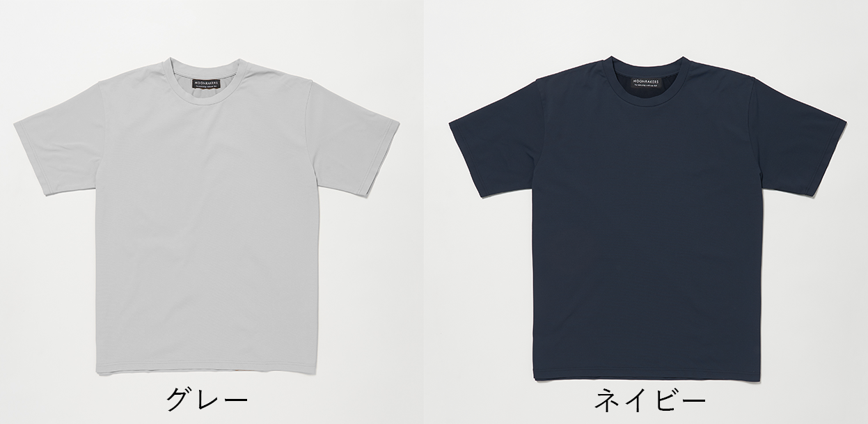 今回、Tシャツのスタンダードカラーの白・黒・グレー・ネイビーに、「MOON-TECH®」をアップグレードするナチュラルで美しい「杢グレー」カラーを追加し、5色展開としています。
