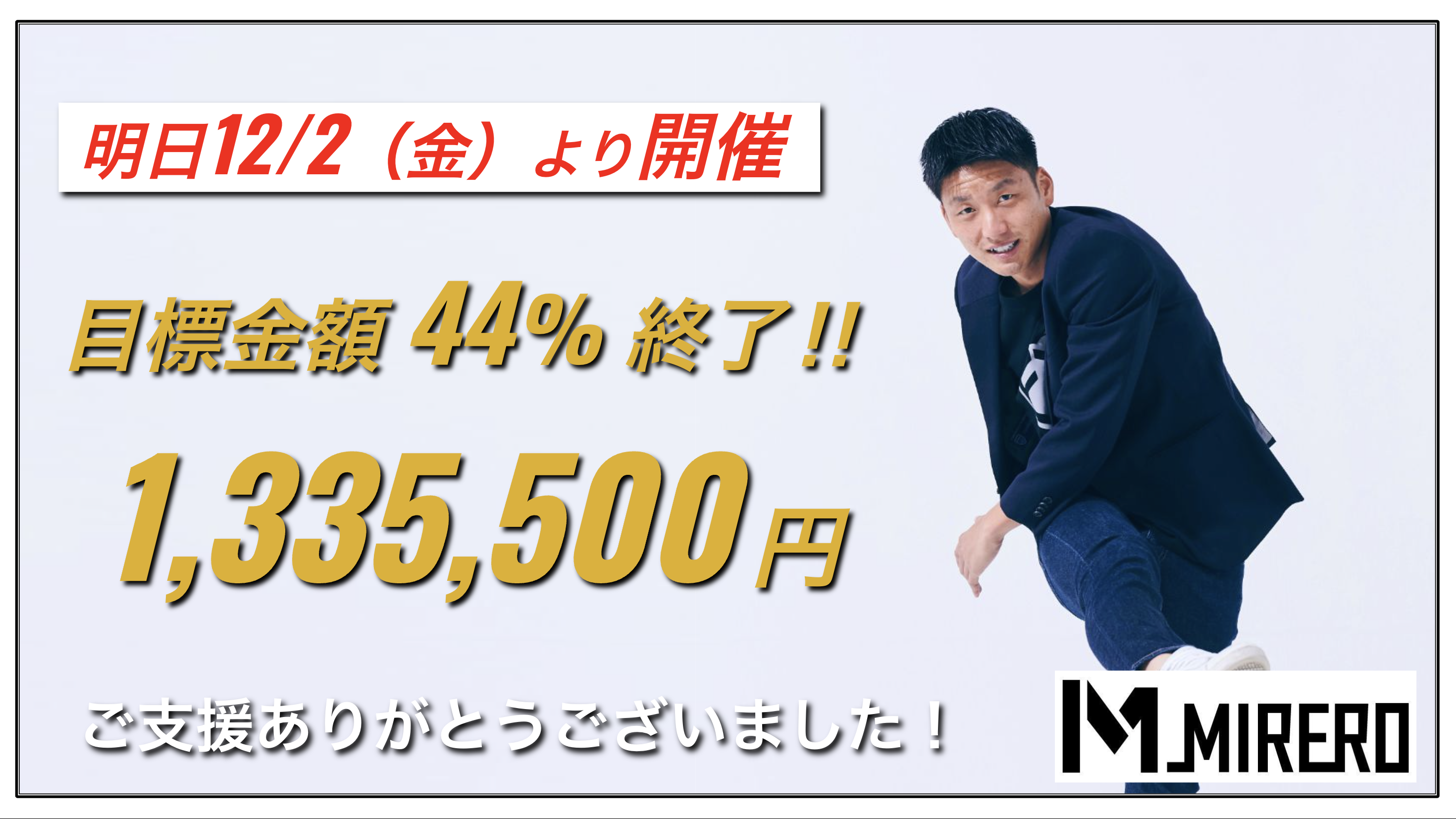 2023/09/25 10:00皆さま、改めて昨年は多大なるご支援をありがとうございました!2021年に始動した「MIRERO FESTIVAL」は、今年で第3回目を迎えることになりました。今年は、「#かけろ」というコンセプトのもと、日朝韓の高校生たちを対象に開催します。サッカーによる交流に留まらず、異文化交流をはじめとする新たな試みにもチャレンジし、非日常の体験を通じて、夢に挑戦するキッカケを未来ある高校生たちへ提供します。今年はSpportunityさんと共にクラウドファンディングを実施しますが、昨年に引き続き既にご支援いただいている方々はありがとうございます!!まだ、ご支援がまだの方で、今年もご賛同頂ける方々は応援の程よろしくお願いします!MIRERO FESTIVAL 2023 クラウドファンディングはこちら もっと見る