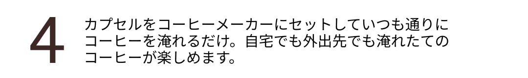 ※「キューリグ」「ネスプレッソクラシック」「ネスプレッソヴァーチュオ」「ドルチェグスト」の4種類から1つをお選びいただき、その種類に対応した同じカプセルが3個届きます。