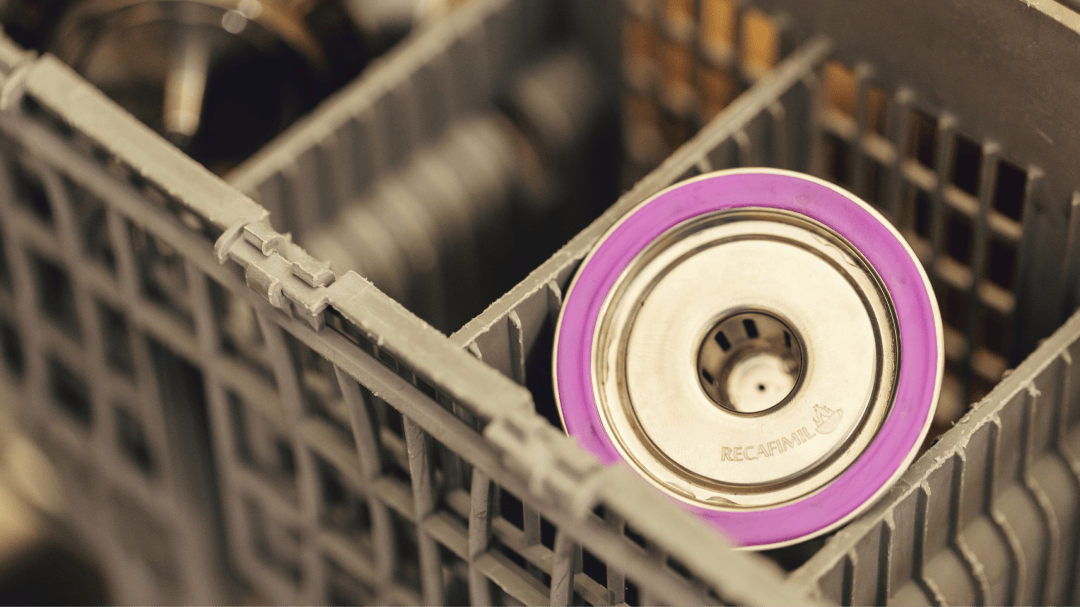 使用後はステンレス製のカプセルを食器洗い機に放り込むだけ。