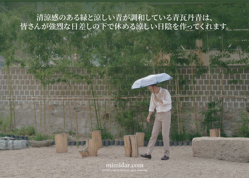 伝統の価値を損なわない範囲内で現代のトレンドに合わせて洗練されたデザインを追求しました。このため、無形文化財丹青匠に関する諮問を受け、丹青傘&日傘を完成させました。