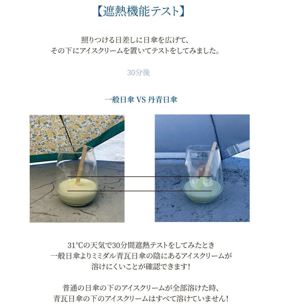 日傘の下の気温を下げる遮熱機能を持つサテン生地を使用しているので、涼しい日陰を楽しむことができます。