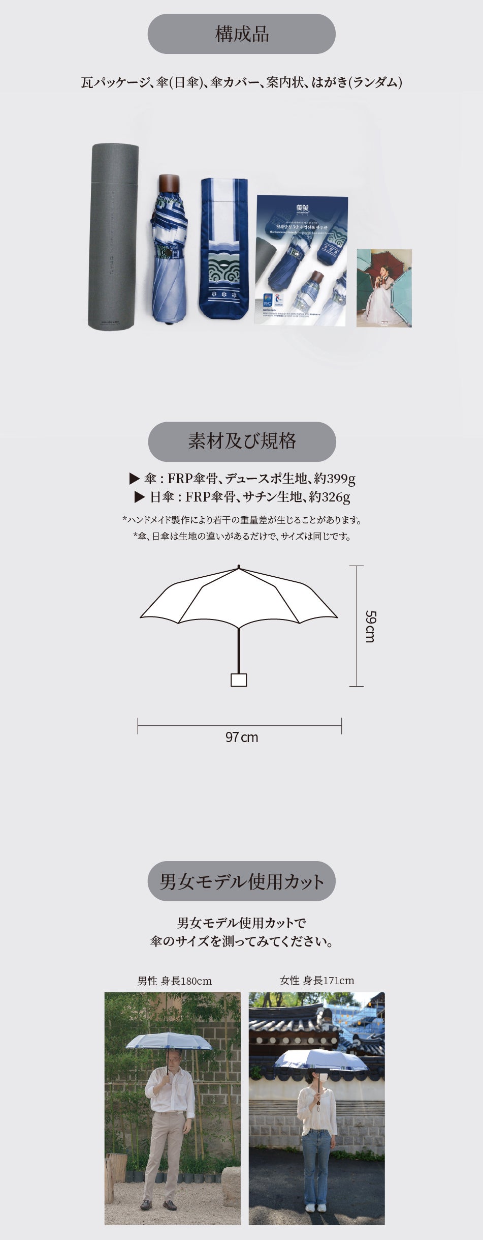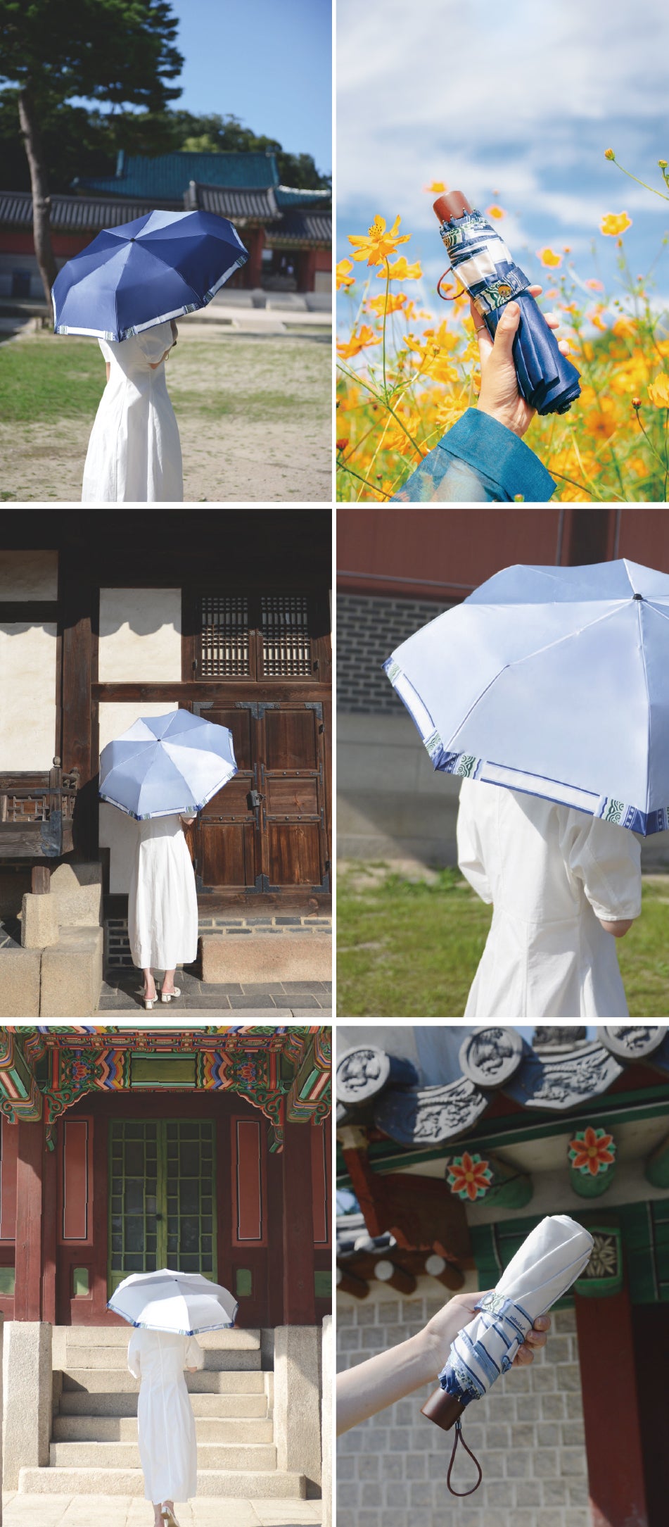 「丹青傘」は傘を使うたびに、まるでソウルの古宮の軒下にいるような風情のある体験をお届けします。韓国の古宮を訪れたことがあれば、すぐに雰囲気を思い出すことでしょう。「丹青傘」をさすたびに、旅行当時のわくわくした瞬間の感情と気持ちを改めて振り返ることができます。