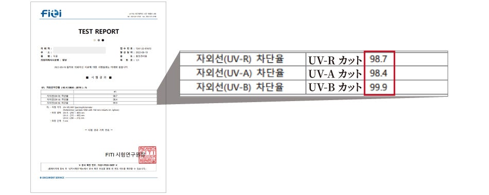 紫外線遮断率が98.7%~のMADE IN KOREAサテン生地は、肌の老化の主な原因である紫外線から老若男女の大切な肌を保護してくれます。