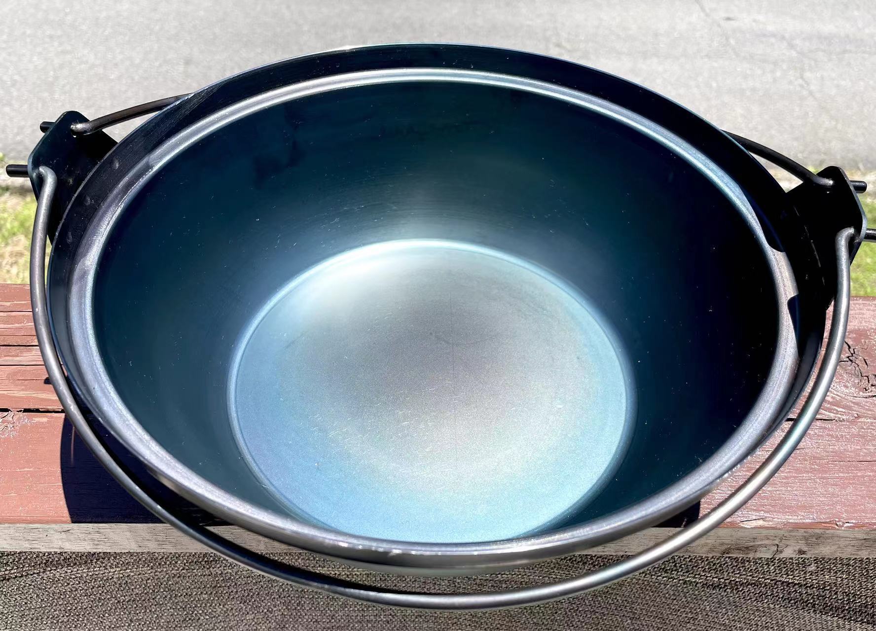 日本伝統の囲炉裏鍋を姿はそのままにキャンプ用に軽量化しました。約1.65㎏!!