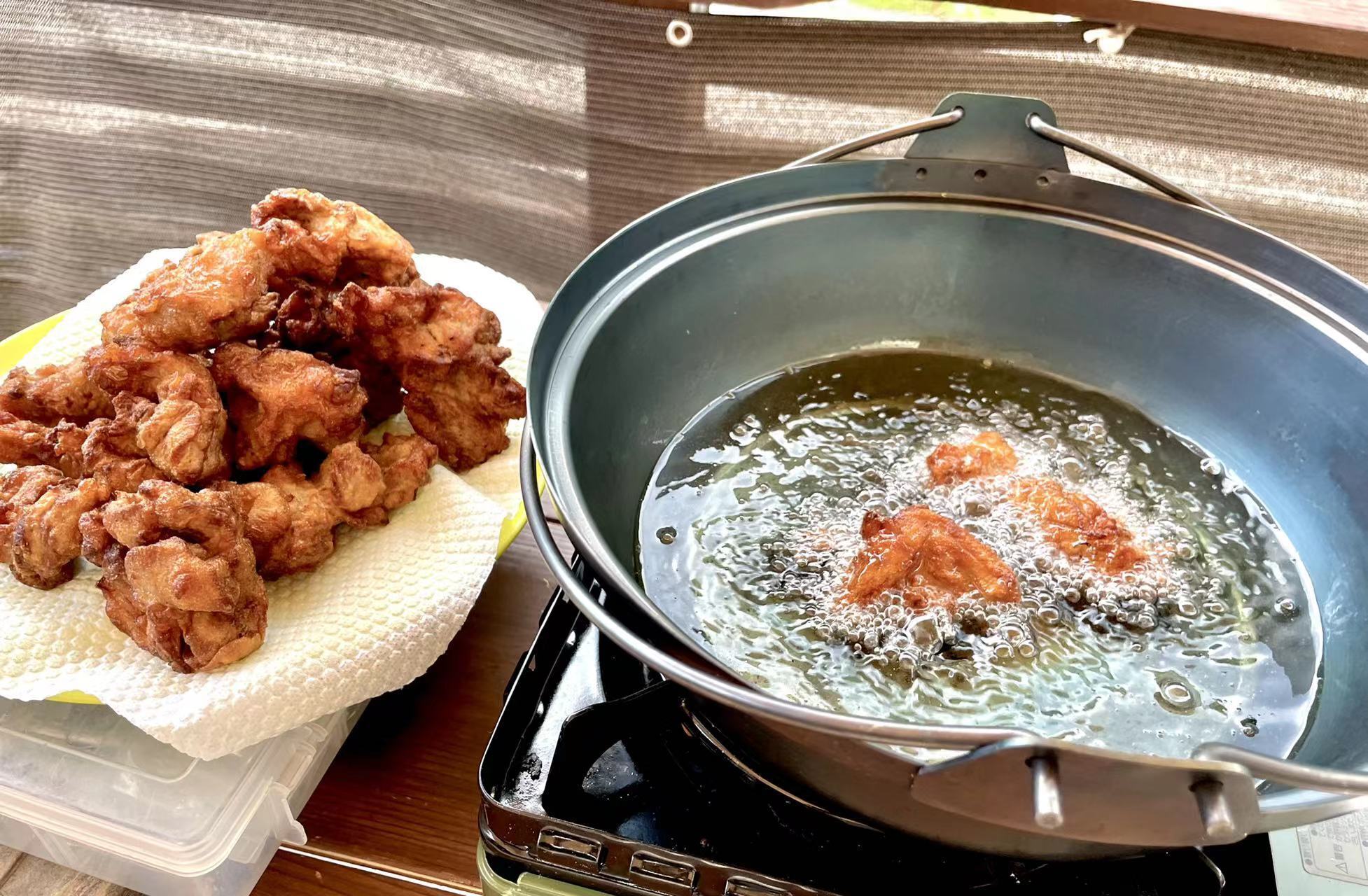 鉄鍋の為、簡単に温度が上がり、サクッと揚げ物が出来ます。
