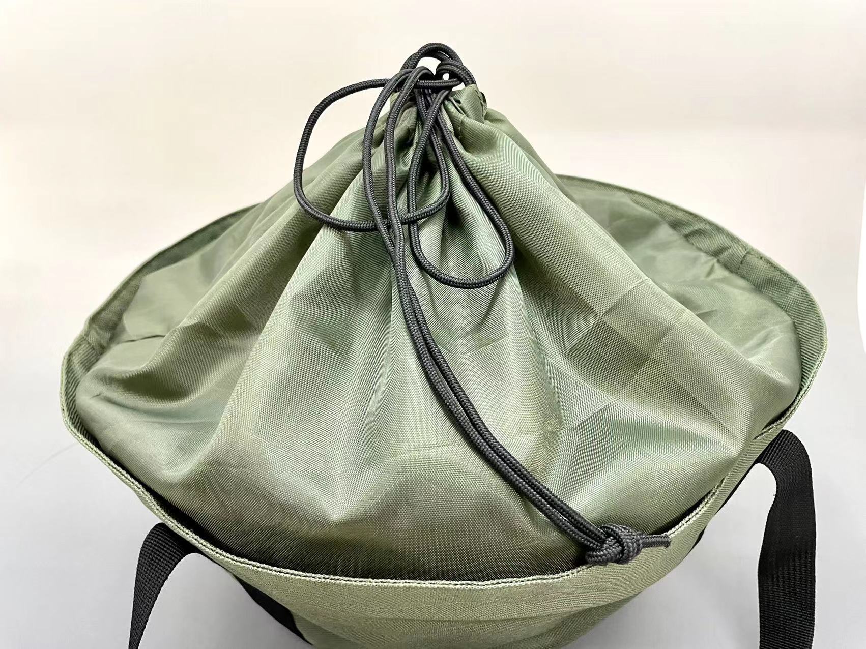 入れた状態。上部巾着部分には、余裕がありますので小物も収納出来ます。