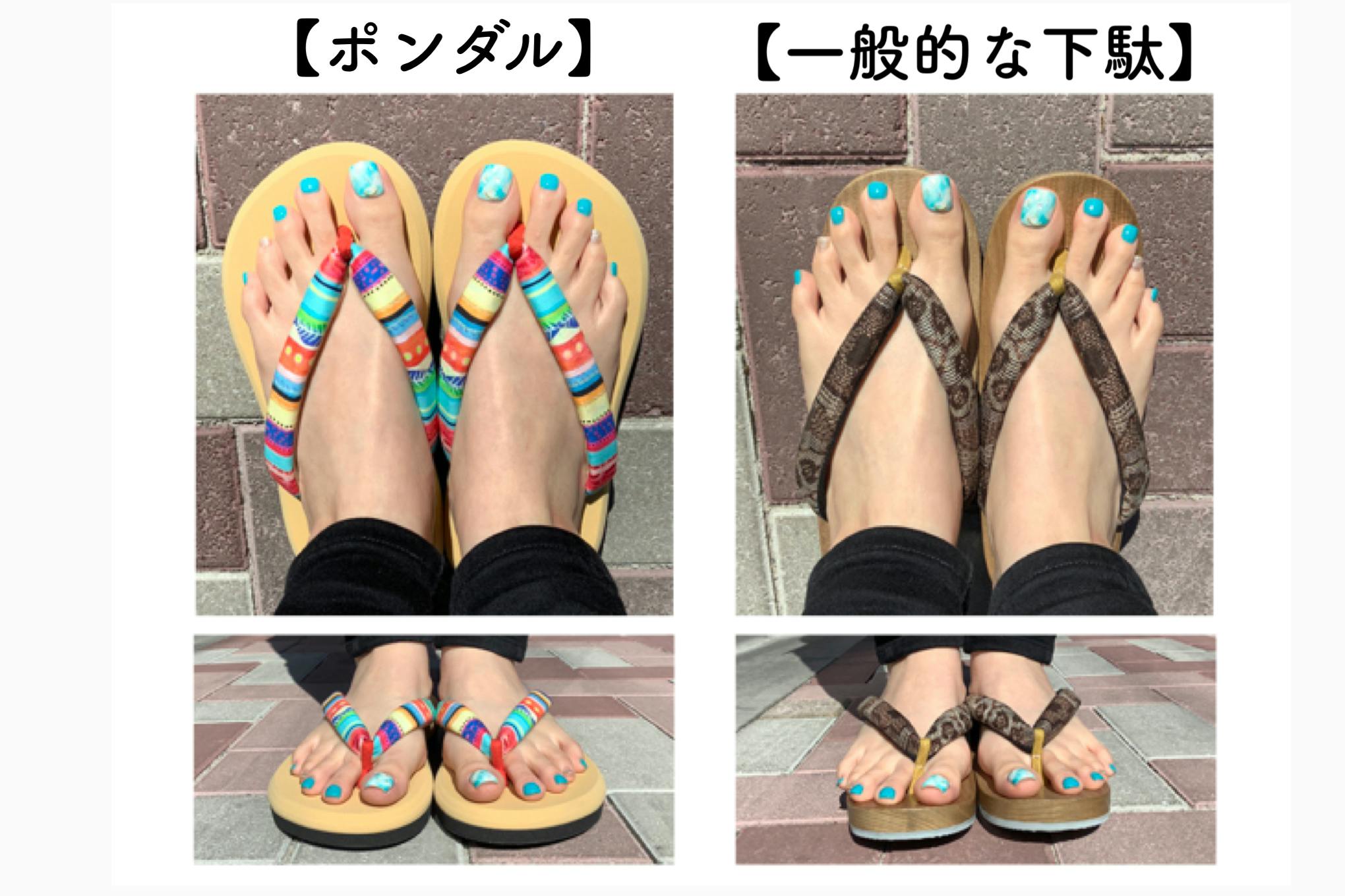 「ポンダル彩〜いろどり〜」は『どこまでも歩いていけそう!』と思わずそんな気持ちにさせてくれる、“よくばりさん”も納得の『1足で2度おいしい』新感覚の履物です。