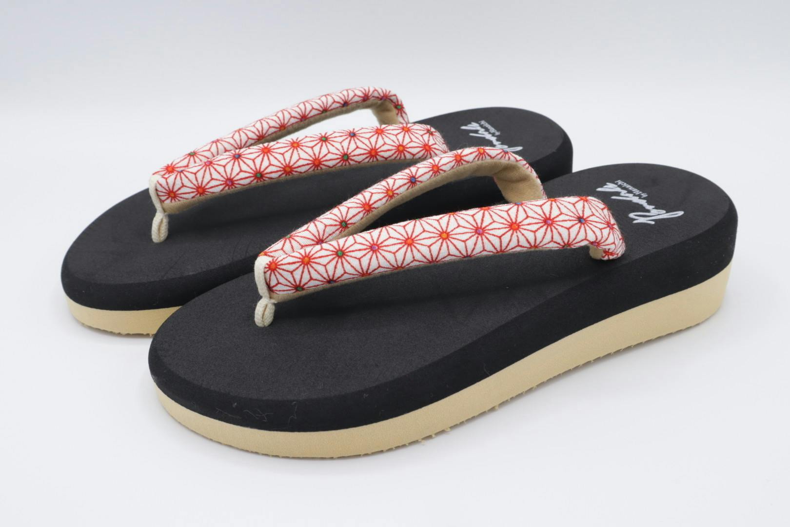 ◆鼻緒の柄は裁断の都合上、1足1足の柄の出方に違いがあります。