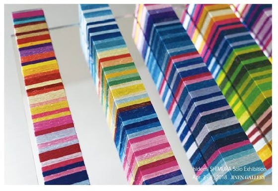 シムラの作品は刺繍糸を1本1本手で巻くという手法で制作されているため、作品を作るのに非常に時間がかかります。今も個展に向けて毎日一生懸命糸を巻いて作品を作っています。