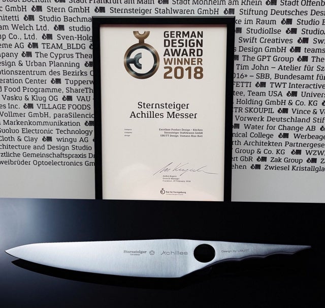 「Sternsteiger Achilles アキレス」は国際的なデザインアワード【German Design Award】を受賞するほどユニークでおしゃれなデザインの包丁です。