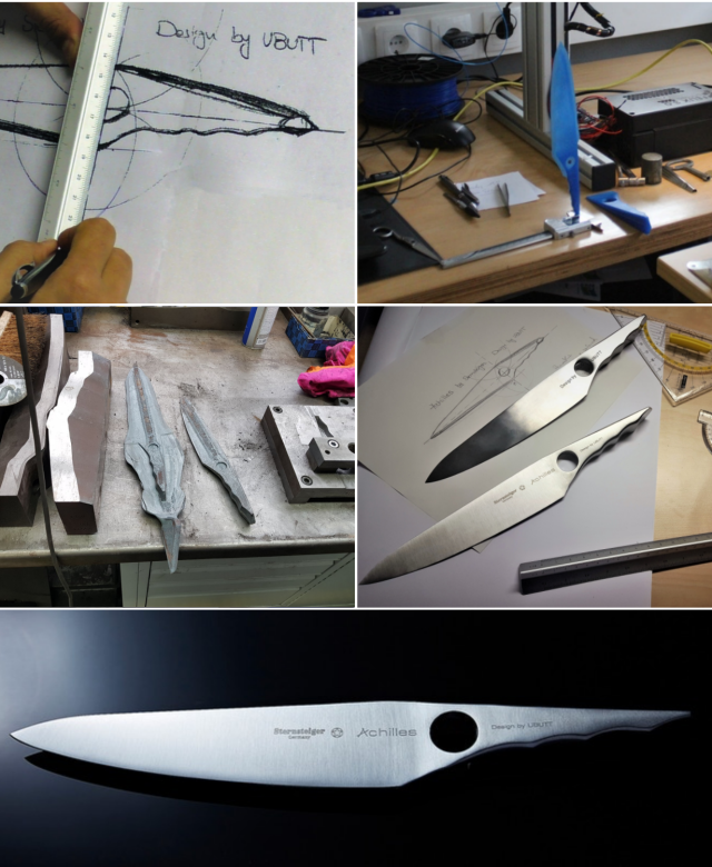 「Sternsteiger Achilles アキレス」はその名前にふさわしいように力強く、かつ美しいナイフになるようにデザインしました。