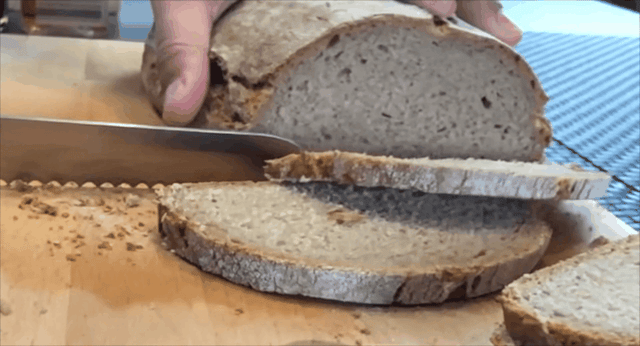 硬くしっかりとしたドイツパンでも力強くカットできます。