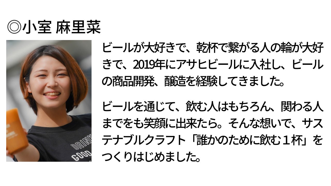 関わる人に喜んでもらえること、未来の誰かのためになること、もったいない食材を救うこと、大好きなビールを通じて、飲む人だけでない、誰かのためになれることに、気づけば私自身が笑顔になっていました。