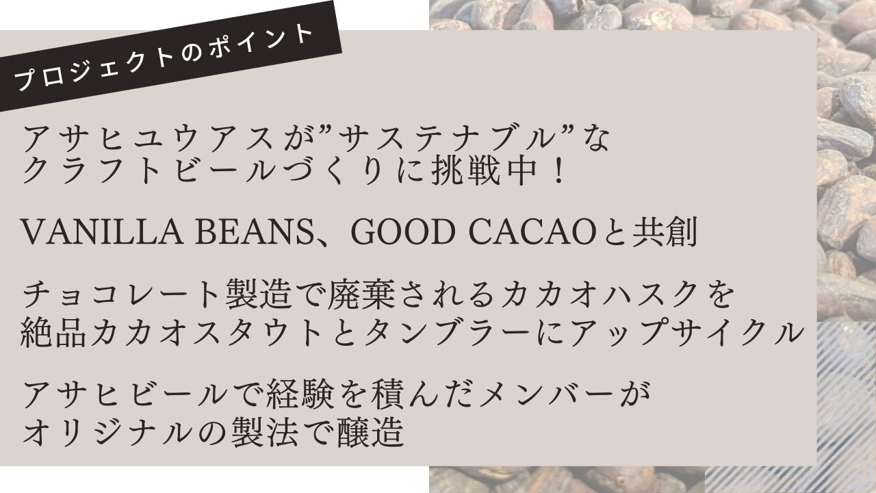 これまでチョコレートを製造する過程で捨てられていた『カカオハスク』を救う、カカオハスクスタウト『BREWED CACAO』、カカオハスクを原料に使用したタンブラーを開発して皆様に届けたいと思っています。