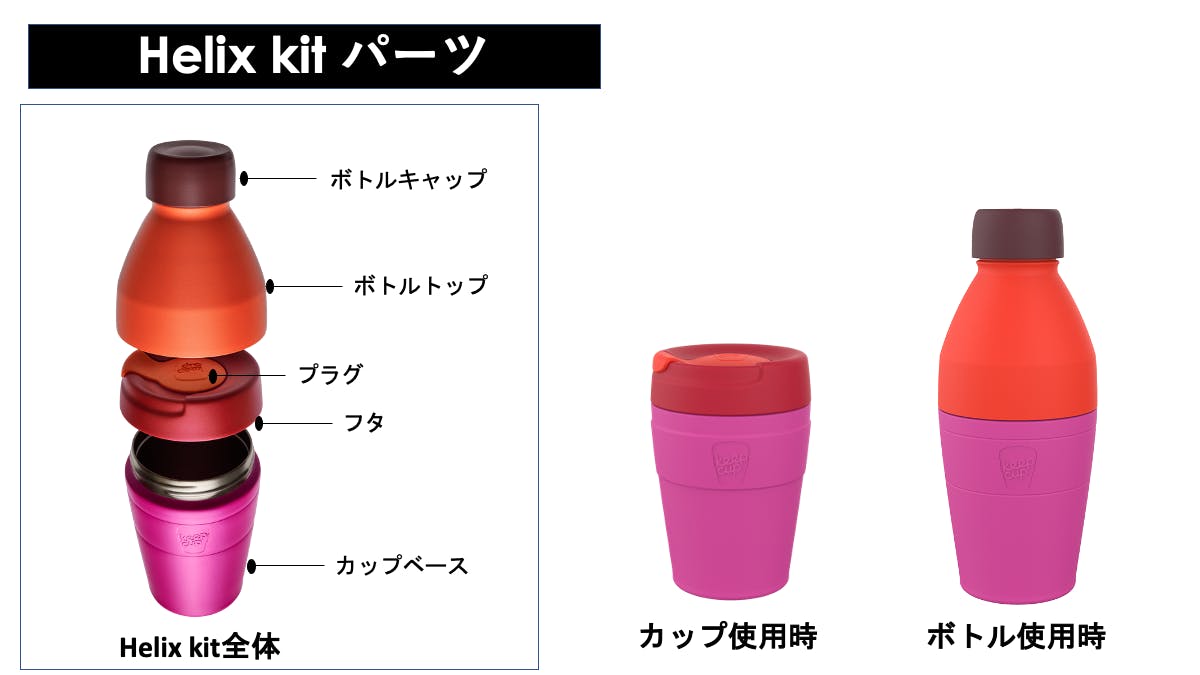 「KeepCup Helix Kit」は、その用途をコーヒーなどのカップ利用だけでなく、水などをいれるボトル利用もできる商品です。