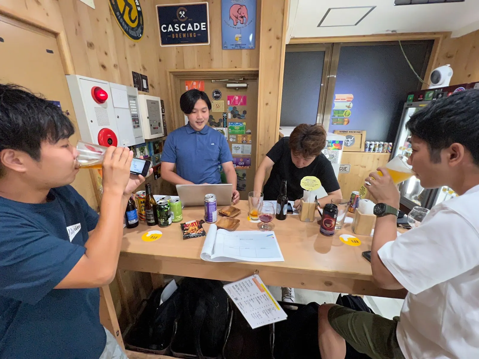 醤油ラーメンに合うクラフトビールを"楽しく飲みながらとても真剣"に考えていく中で、醤油ラーメンと非常に相性の良いトッピング「海苔」の香りがしたら面白いのでは?というアイデアが出ました。「確かに、ビールからほのかに海苔が香ったら醤油ラーメンのペアリングに最適かも」と思い、今回ビールを作っていただく『こまいぬブルワリー』さんに相談したところ「ぜひ挑戦してみましょう!」と快く引き受けてくださいました。
