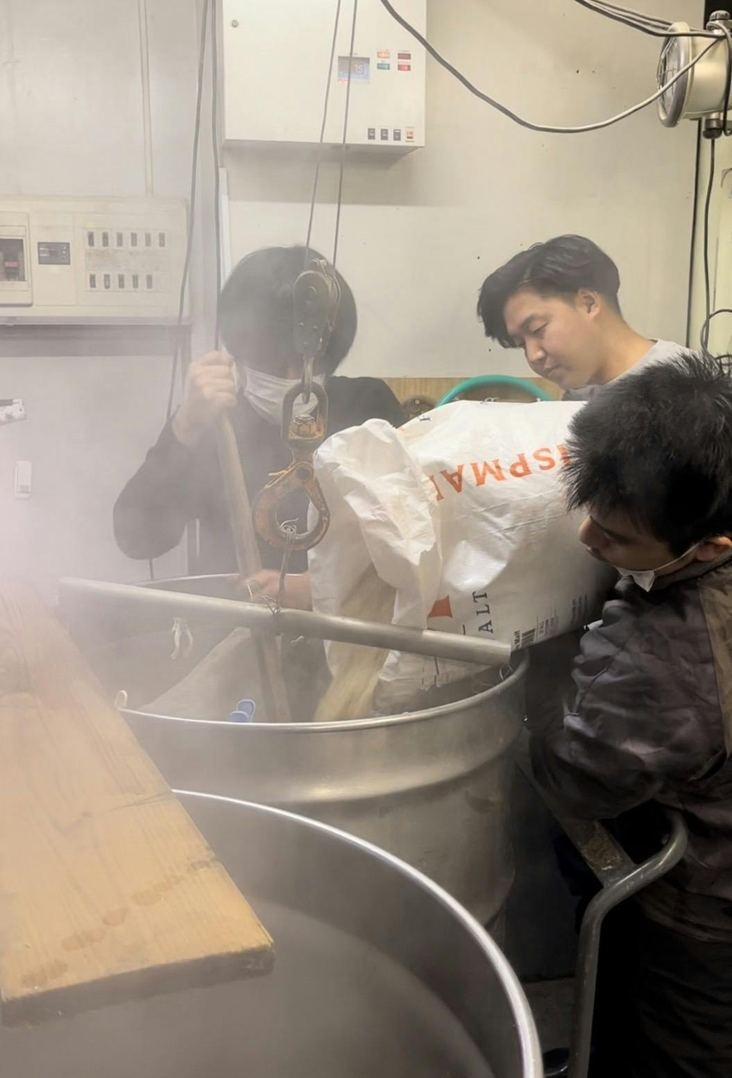 2023/01/15 16:32先日、華麺舞踏会醤油との出会いの仕込みに立ち会って来ました!浅草開化楼さんの「麺」と山本海苔店さんの「海苔」がご対面。麺は、一回茹でから糖化のタイミングで投入!麺を茹で上げてるとき、ついついラーメンが食べたくなってしまいました笑海苔は、麦汁を煮沸するタイミングと、発酵中のタイミングに投入し、海苔の旨みと香りを移してます!皆さまに、完成品をお届けするのがとても楽しみです!出荷は、2月から順次出荷予定!もう少々お待ち下さいませ!! もっと見る浅草開化楼さんから「麺」を頂戴しました!!
