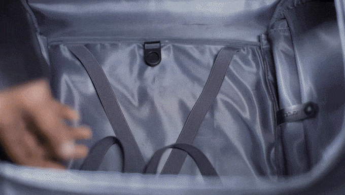 さらに嬉しいことに、TRIPPERなら靴の収納もできます!メイン収納とは別に靴を入れられるポケットがついているので、ジムや仕事用の靴などを、手荷物を増やさずに持ち歩くことができます。使わない時は内側から畳んでしまえば、メイン収納の空間にも影響はありません。
