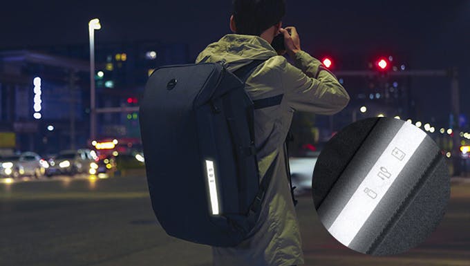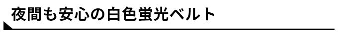 両サイドに蛍光ベルトが付いているので、夜間も安心かつ昼間は目立たずスタイリッシュに。