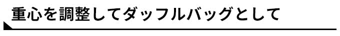 バックパックとして背負えるだけではなく、上と横にも取手がついているので縦持ちや横持ちはもちろん、ショルダー部分の重心を調整することによりダッフルバッグとして持つことも可能です。