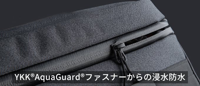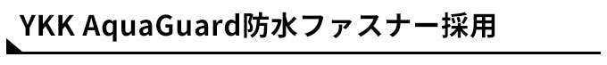 テープの表面をポリウレタンフィルムでラミネートし、止水性を持たせる処理を施したファスナーを本体に使用しているので、ファスナーからの侵水もしっかりガード。