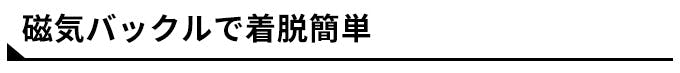 パッと近づけるだけで止められるマグネットタイプのバックルでスマートに。使用中は外れにくく、外したい時はさっと外れる便利な最新バックルです。