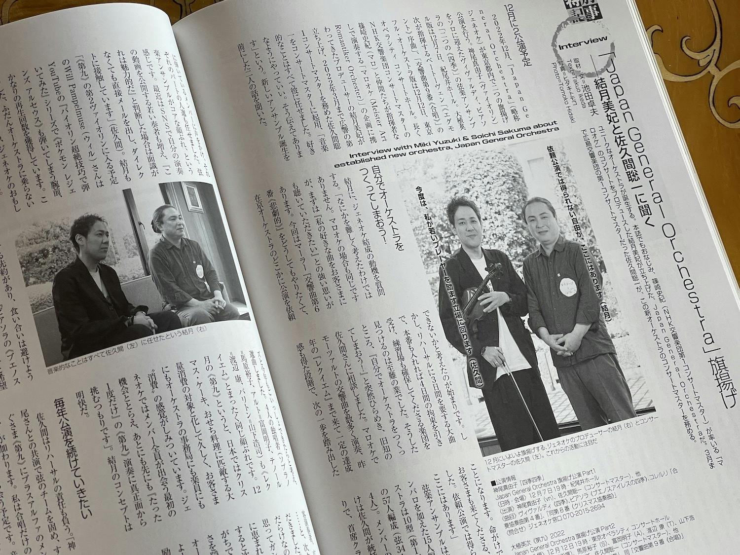 月刊誌『音楽の友』(2022年10月号)に特別記事にジェネオケが掲載!