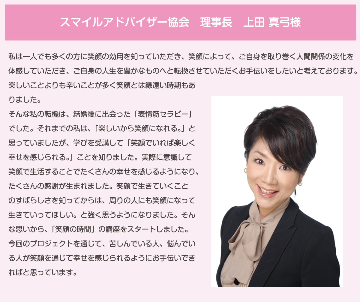 人生にはいろんな苦難はあるけれど笑顔で乗り越えられる。元気は自分で作ることができる。笑顔で多くの受講生が幸せを感じることができるようになれば嬉しく思います。