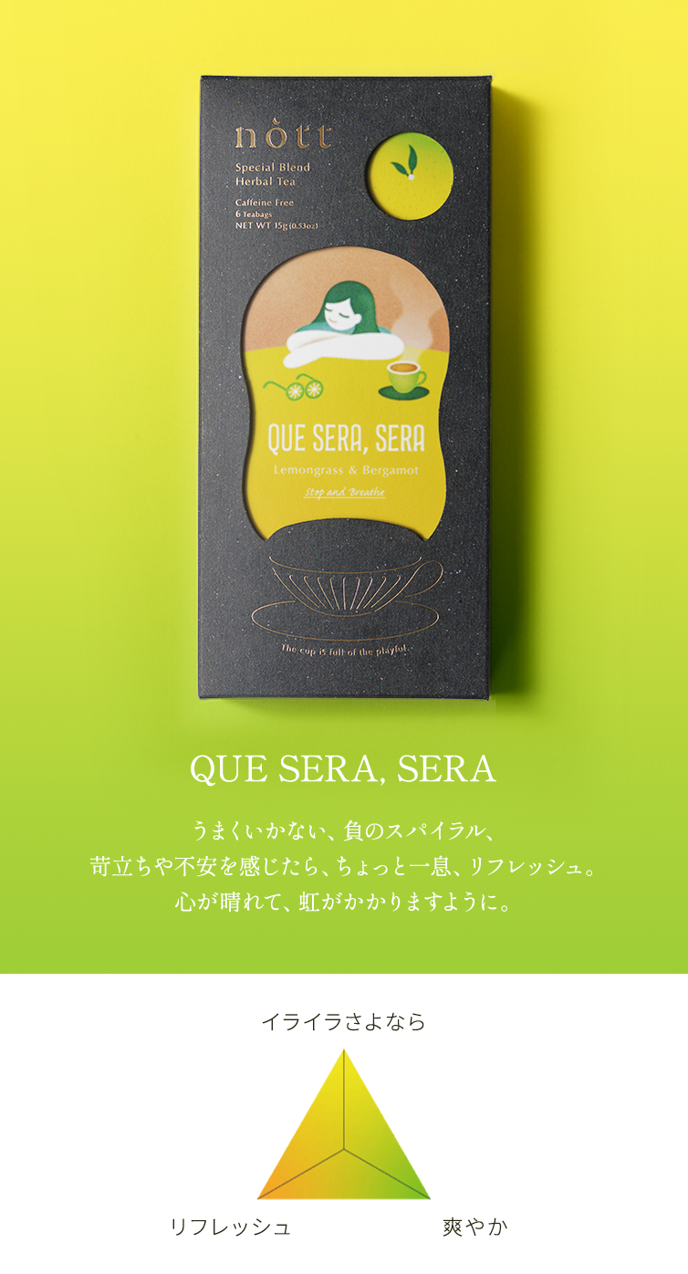 クリエイターとしてそれぞれが培ったもの、共に働いてきた開発メンバーと一緒に見てきたものを、カタチにしたのがこのハーブティーになりました。私たち自身、パッケージやそれぞれのハーブの調合、商品の名前にも「遊び心」を忘れずに、誰よりも楽しく企画してきました。