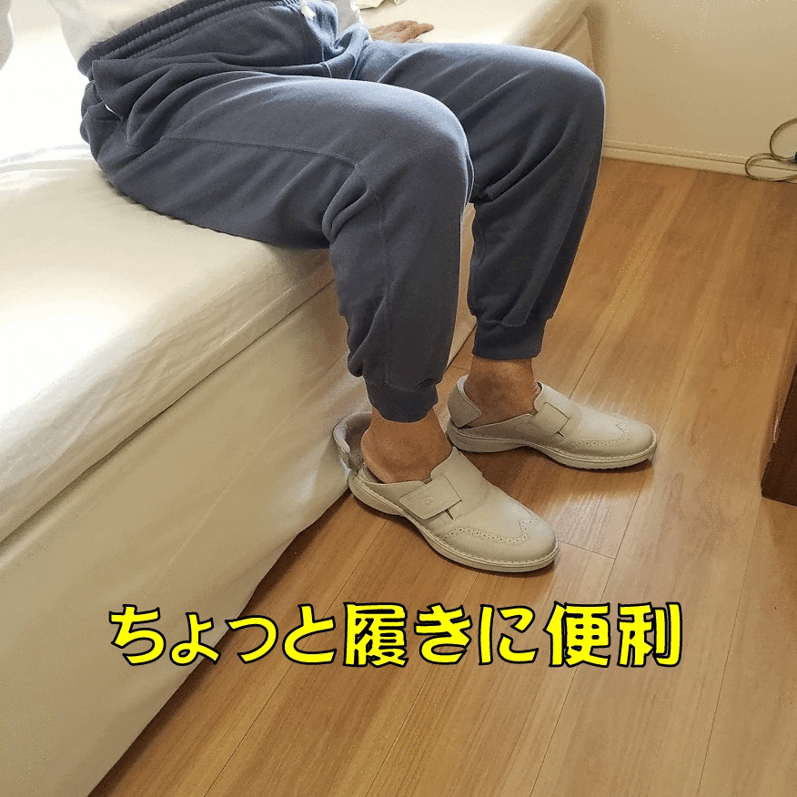 ①履く&脱ぐが簡単に!手を使わず立ったまま履ける。
