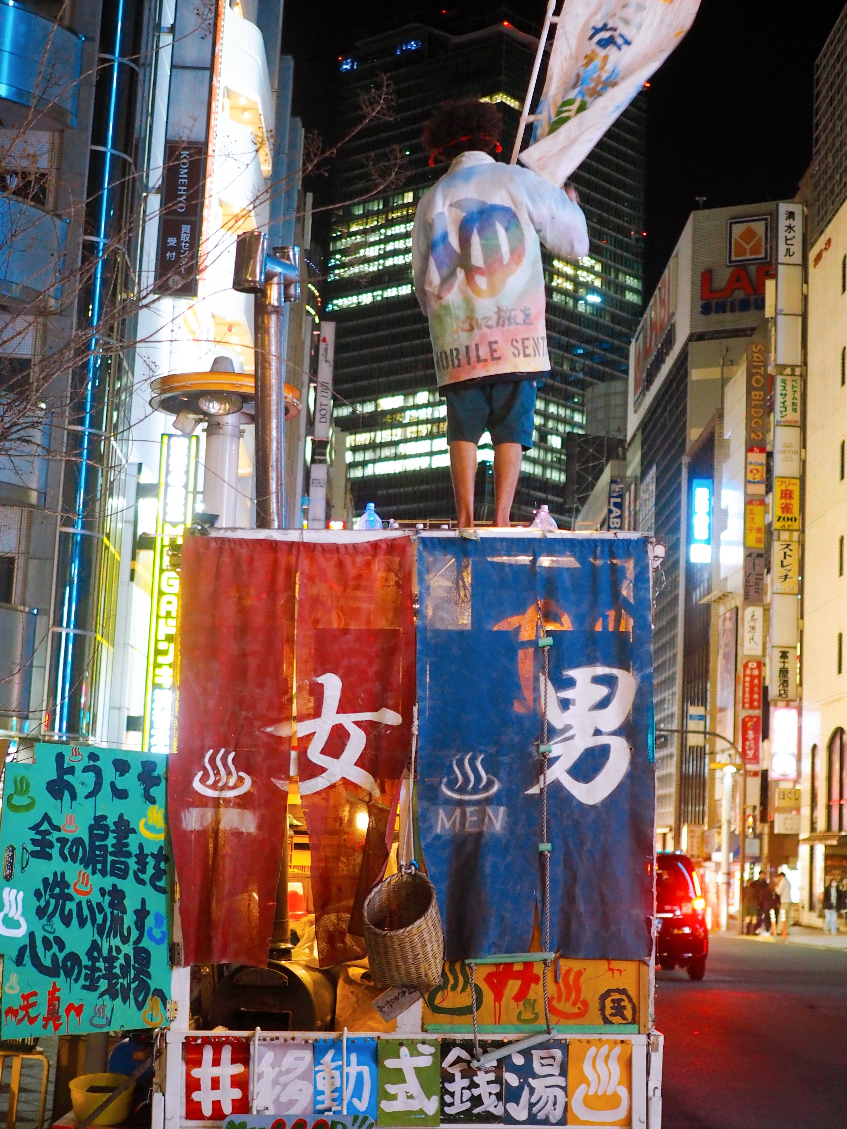 ▼12.24/クリスマスに渋谷センター街でお風呂を沸かすそして今年の1月から2月にかけて行った「移動式銭湯サドンデスJOURNEY」