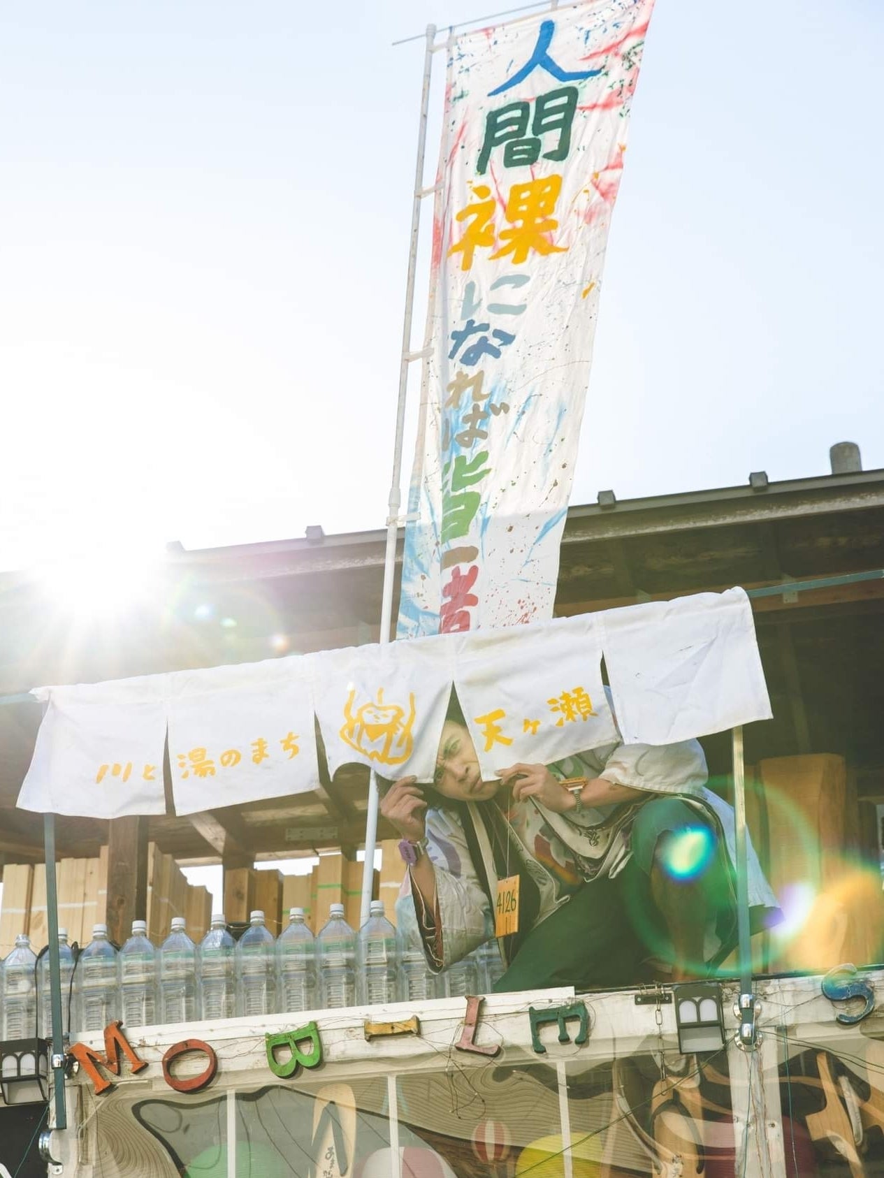 ▼法被は自分にとって湯の無い銭湯そのもの海外で四六時中この姿(はっぴ)で過ごしたことで改めて日本の「お風呂」というものに可能性を感じた自分は日本へ帰国後トラックの上にお風呂を載せた“移動式銭湯”なるものを創ることを決意