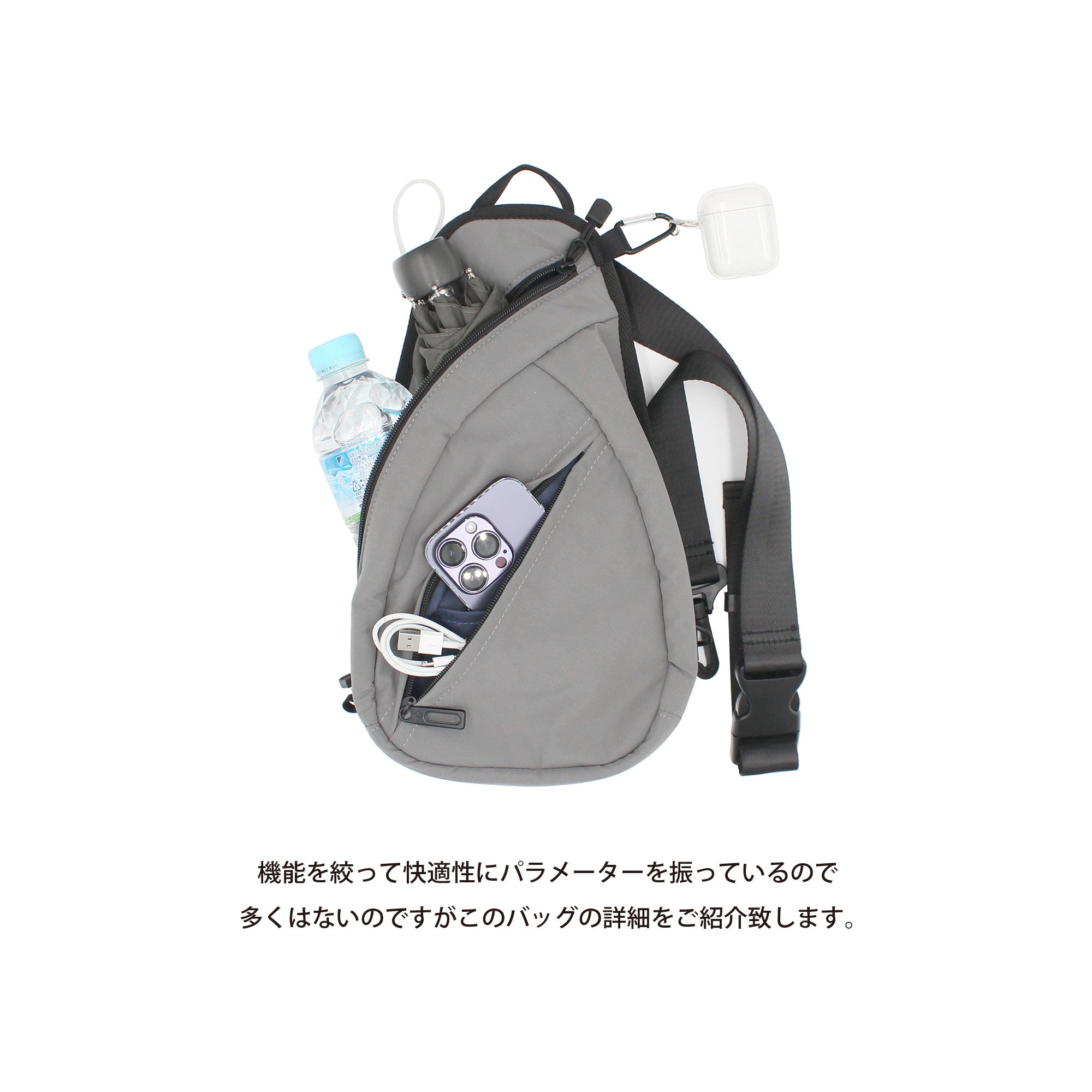 2023/08/18 12:00ご支援して頂きました皆様、お気に入り登録をして頂いた皆様、ご閲覧してくれている皆様、本当にありがとうございます。現在、達成率272%!! (8月18日現在)残り10日間にはなりますが、最後までこのスリングバッグの魅力をお伝え出来ればと思います。今回は私がリアルに持ち歩いてる持ち物をスリングバッグのどのポケットに収めているかをご紹介致します。容量や使い勝手の参考にして頂ければ幸いです。-長財布-私の使用している長財布です。結構ボリュームのある財布ですが、どこに収納してるかと言うと。。。メインポケット内の背面ポケットに収納しています。長財布はバッグにしまって使用している方が多いそうです。(私もバッグにしまって使用派です)このポケットならクッション材も入っていますし、財布にキズも付きにくく出し入れもしやすいです。-モバイルバッテリー&コード類-モバイルバッテリーとコードは今や必需品ですね。出来ればサッと使用出来る場所にしまいたいところ。メインポケットのメッシュポケットを活用しています。ここなら、入れてる物も一目瞭然なので、使いたい時にサッと使えます。-メガネ・メモ帳・筆記用具-プライベートな時間でもアイデアが浮かべばすぐにメモ。アナログな感じですが、なぐり書きして後でまとめるのが私流。メガネとメモ帳・筆記具は私の必需品です。メインポケットに全て収納しています。見た目よりも容量が入るバッグなので、これでもまだ余裕があるんです。メインポケットは背面からもアクセス可能なので、メモなどを素早く取り出せるのも、とても助かります。-鍵類・エチケットタブレット-私は自転車で移動が多いので、鍵の出し入れが頻繁なんです。頻繁に出し入れするモノは正面ポケットに収納しています。撥水生地で正面ポケットは止水ファスナーを使用しているので、自転車に乗る際などはスマホを入れる事もあります。すべてを収納したスリングバッグの状態です。型も崩れず、スリムな状態で身体にフィットしてくれます。-AIR PODS-AIR PODS はDカンに付けています。ループに通す事もあるんですが、位置的にDカンに付けた方が個人的にしっくりしたので。Dカンに付けると身体に沿うような位置になるので、歩いたり自転車に乗ってもAIR PODSがバタつかないんです。(個人差はあると思います)それと、この位置ならではの意味もあるんですが、それは次回にご紹介します。最後までお読み頂きましてありがとうございます。プライベートな事から色々な情報を発信していますのでホームページ、インスタグラムやX(旧TWITTER)・THRAEDSなども是非ご覧ください。FUNCTIONALのINSTAGRAMはこちらから→弊社TWITTERはこちらから→弊社THREADSはこちらから→弊社ホームページはこちらから→ もっと見る