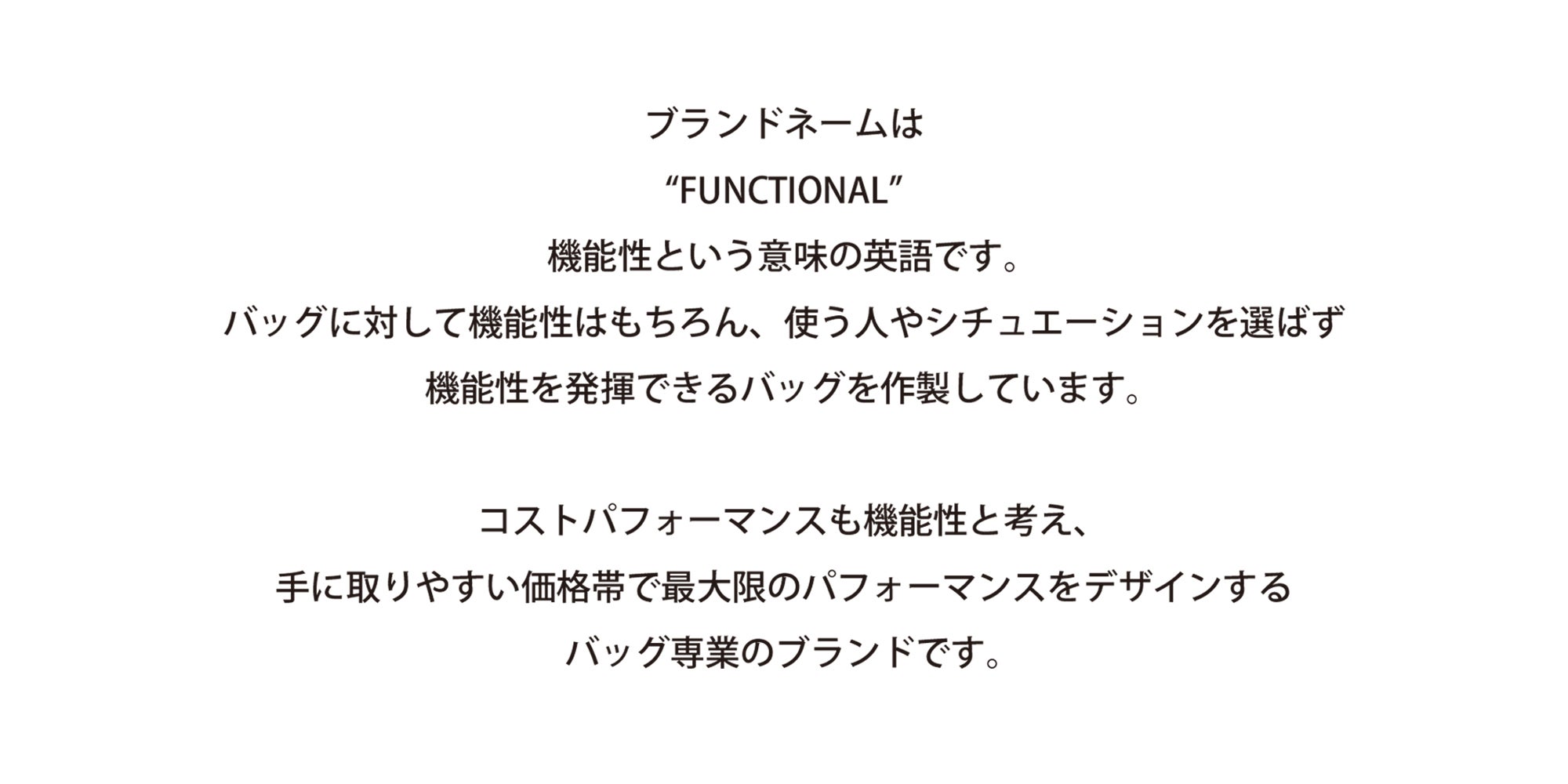 ブランドネーム"FUNCTIONAL"は機能性という意味の英語です。