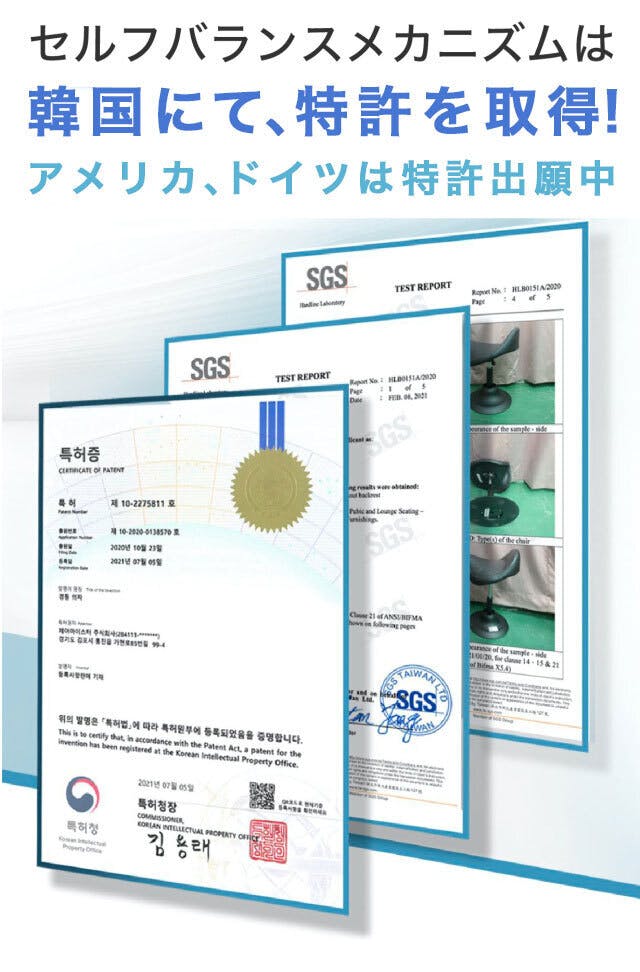 A2.セルフバランスメカニズムは、韓国で特許を取得した、ホースライディングチェア独自のメカニズムです。※アメリカ、ドイツでも現在特許出願中です※前後左右どこからでも8度傾くと、センターに自然に戻る動きを繰り返し行うため、滑らかな揺れとなります。揺れがセンターに戻る際に、お腹に力が入るため、デスクワークしながら体幹をトレーニングできます。また、心地良い揺れに意識を向けることで適度な気分転換となり、仕事の効率もアップします。